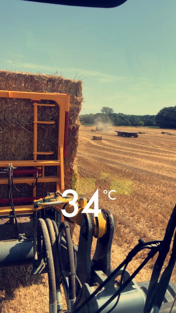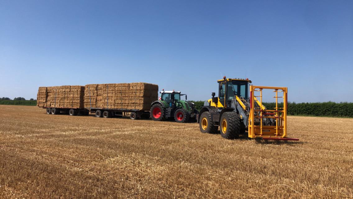 De klem werkt perfect en doet wat we er van hadden verwacht. Dat alle haken tegelijk in en uit de balen gaan, werkt heel snel. De balen worden 4 hoog klaar gezet zodat de Fred de balen snel op kan pakken en weg kan zetten. “