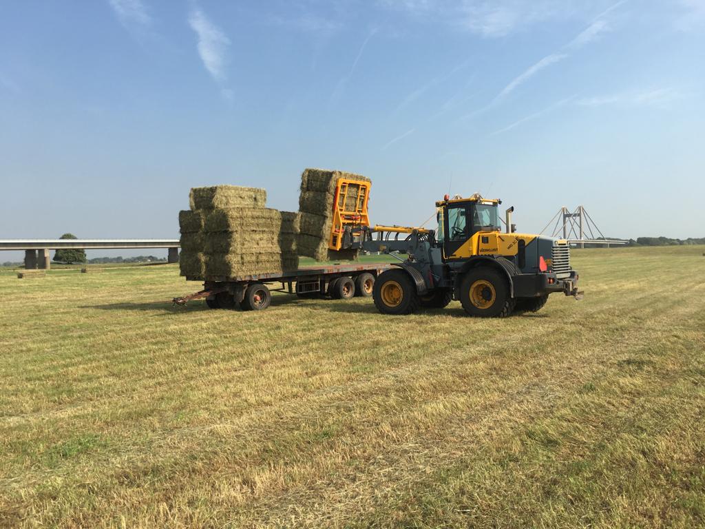 Een boer in de buurt had een klem die we konden lenen. Het is ook maar voor een paar weken in het jaar. Maar we kregen steeds meer hooi en wilden daarom toch investeren in een nieuwe klem. Nu doen we jaarlijks ca. 3000 pakken met de klem.